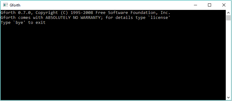 Once installed, to launch Gforth, launch the Windows quick menu and search for Gforth: